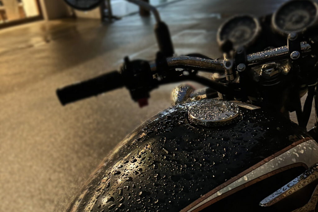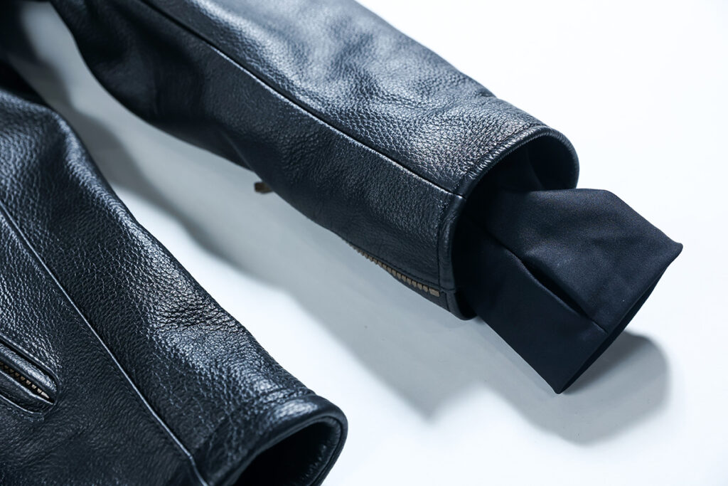 天気が多少不安定でも「おしゃれにバイクに乗れる事」を目指す為、防水カウレザーを採用しました。防水性もありつつ、しっかりとした生地感で高級な雰囲気です。