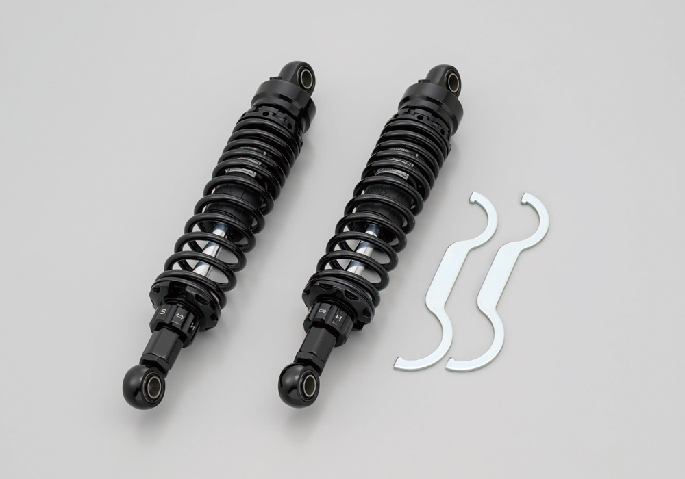 アジャスタブルローダウンリアショック(32471)(ブラックボディ、ブラックスプリング)と、GB350/S専用のショートサイドスタンド(26232)のセット。