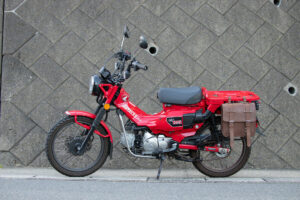 車体との干渉で劣化しやすい裏側にバッグガードを標準装備。面ファスナー式でガードしたい場所を調整できる。