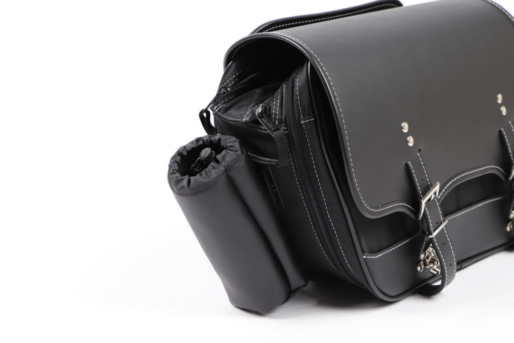 ドリンクホルダーはバッグの左右どちら側にも装着できます。車体に沿った斜めスタイルで、装着した際のフィット感が抜群のバッグです。