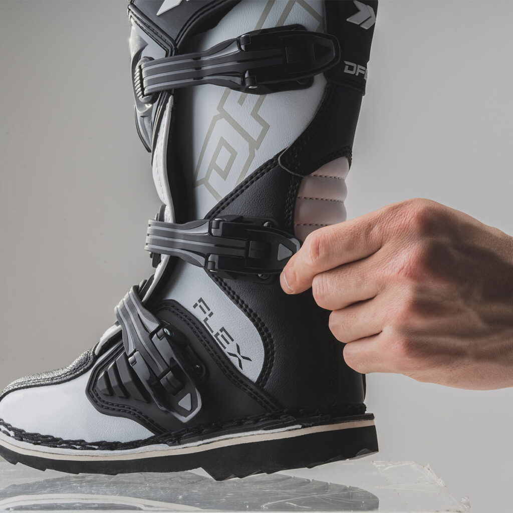 足に合わせた専用設計で、快適なフィット感を実現。本格的なモトクロス走行に対応。