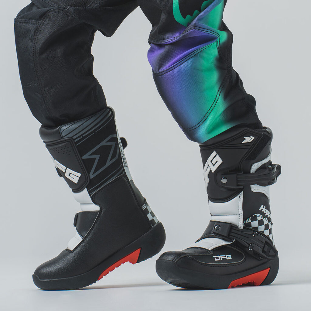 バイクパーツメーカー株式会社ダートフリークは、オリジナルブランドDFGのユース、キッズ用モトクロスブーツを発売した。フレックスブーツは、操作性はそのままに、転倒した際や障害物等から足を保護する強度も両立。専用設計で快適なフィット感を実現し、本格的なモトクロス走行に対応している。価格はユース、キッズ共に24,200円だ。ホッパーブーツは、フレックスブーツ同様操作性や保護性に優れているため、エンジンバイクや電動バイクに乗り始めるキッズライダーに最適なモトクロスブーツとなっている。価格は19,800円(いずれも税込)である。