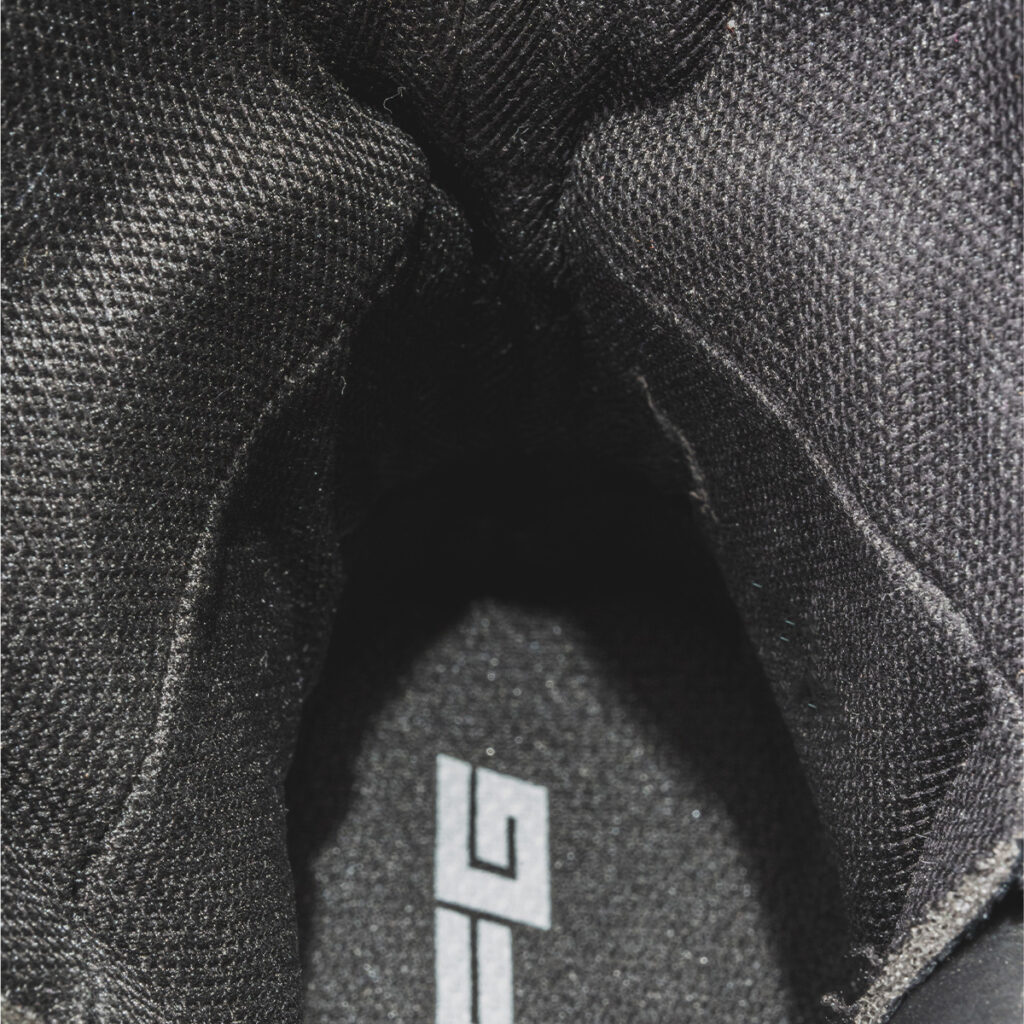 ブーツ内側に耐熱性、耐久性に優れ、滑りにくい本革スウェードを採用。エンジンやエキゾーストパイプの熱からブーツを保護し、フラット形状でスムーズなライディングにも貢献。