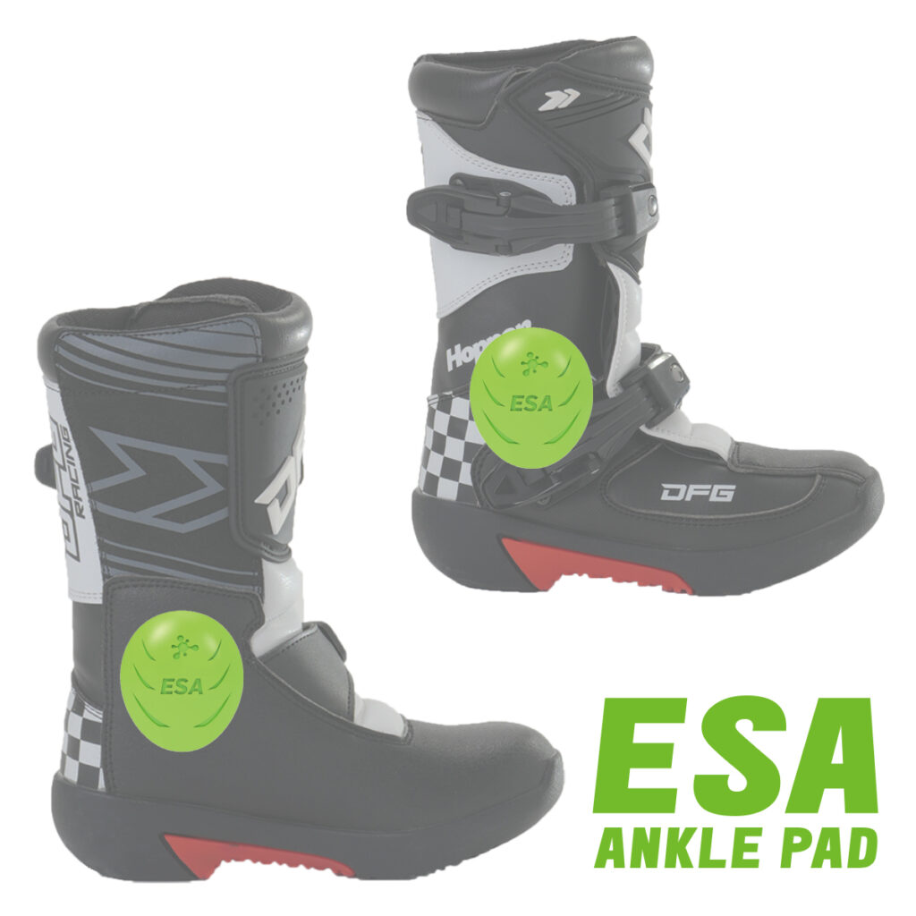 通常の状態では柔らかく、高速衝突時には衝撃を瞬時に吸収・分散する特殊なプロテクター(ESA)を足首部分に内蔵。走行時・転倒時に最大限の保護力を発揮し、足首をしっかり守る。