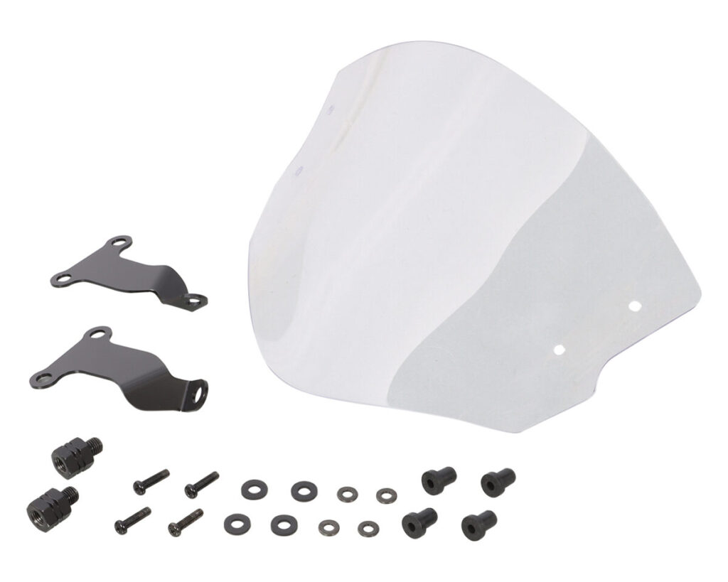フロント周りを引き締めるポリカーボネイト製の小型バイザー。