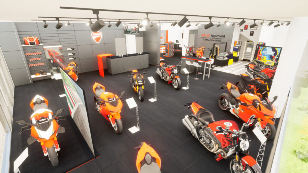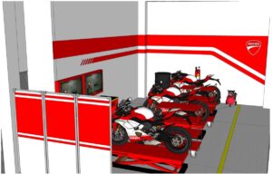 200㎡を超える最新のショールームはドゥカティの世界観を余すところなく発信し、3基のリフトを擁するピットがお客様のドゥカティをベストコンディションに保つお手伝いをさせて頂けます。