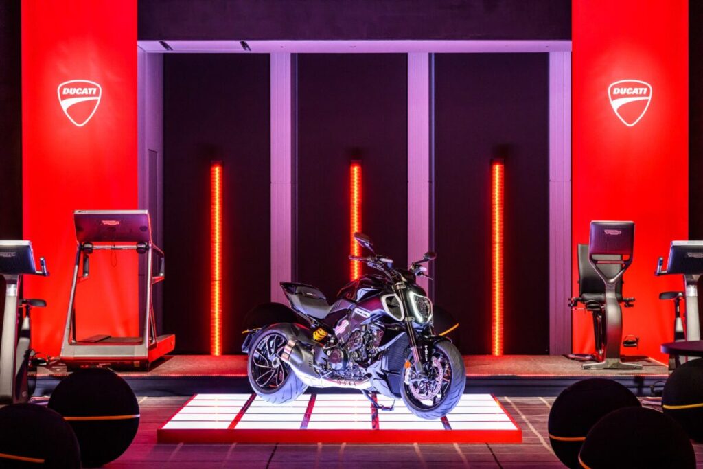 イベントでは、ドゥカティ レッドとスリリング ブラック2色の新型ディアベルV4を展示、昨年ミラノで開催されたEICMAショーで「最も美しいバイク」に選ばれたこのモデルのデザインを強く印象付けるディスプレイとなりました。