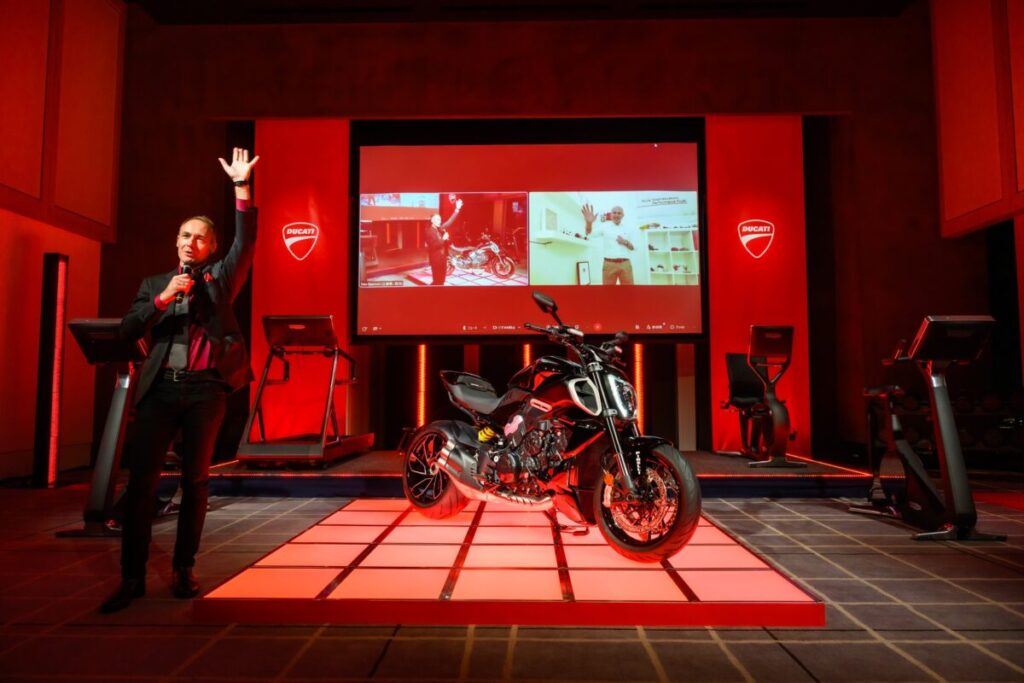 - 昨年11月に開催されたイタリアのEICMAショーで「最も美しいバイク」の称号を獲得した大胆なデザインの新型ディアベルV4を、イタリアからドゥカティ チェントロ・スティレ デザイン ディレクターのアンドレア・フェラレージ氏がライブ プレゼンテーションを実施、120名以上のゲストを魅了しました。