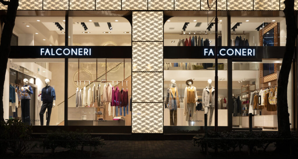 Falconeri (ファルコネーリ)は、高品質でありながらもメイド・イン・イタリアにこだわり、手ごろな価格で幅広いアイテムで展開しています。カシミヤをはじめとする最高級の天然素材を使用し、クラフツマンシップによる伝統とモダンで洗練されたデザインの融合、そして細部へのこだわりが際立つアイテムを提供しています。製造工程の大部分は、イタリア・トレントの自社工場で行われています。シグネチャーであるスーペリアカシミヤニットは、デザインとカラーバリエーションが豊富にそろっています。現在ファルコネーリは世界に100店舗以上を展開しており、今後はアメリカやアジアにも拡大しています。