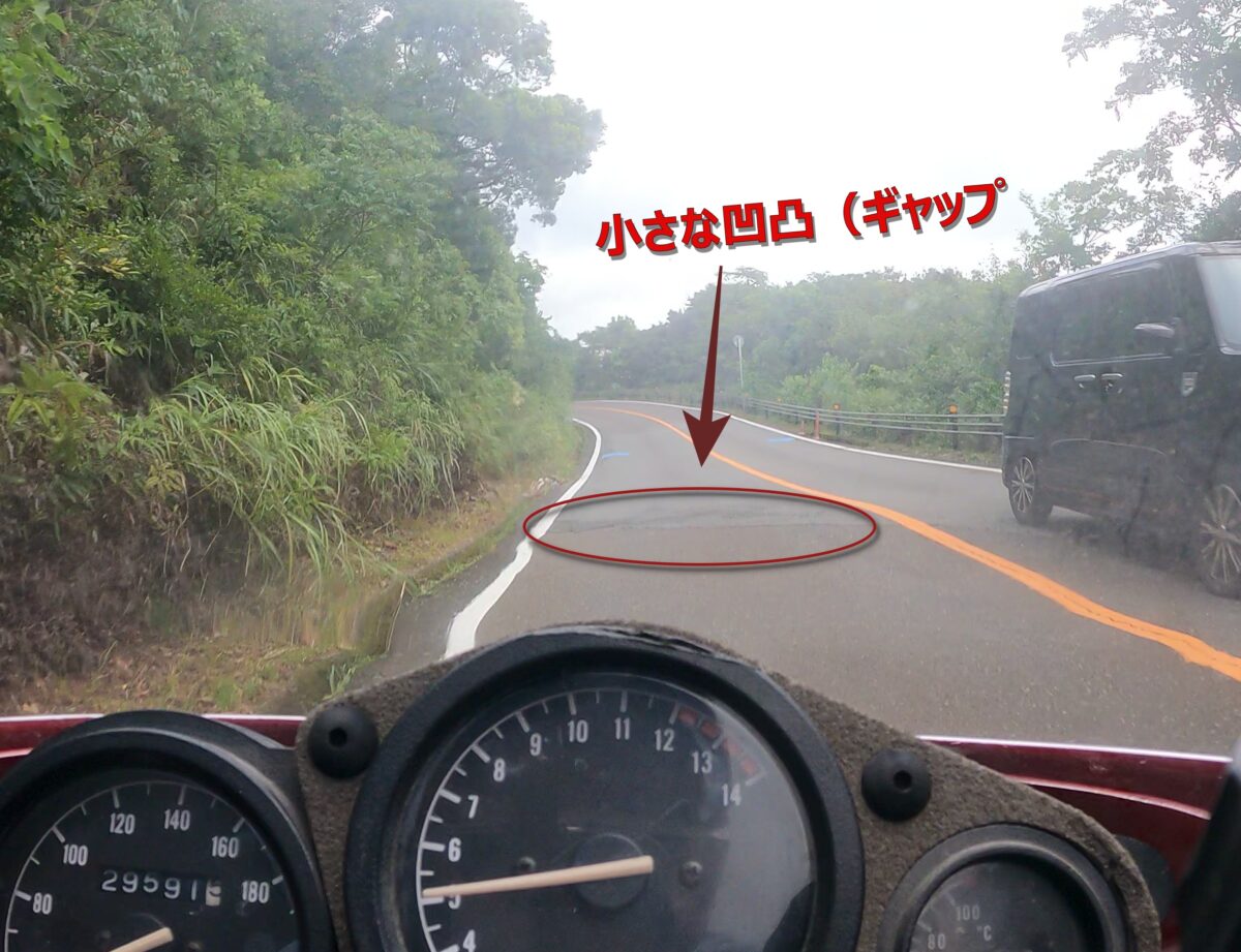 サーキット走行やオフロード界隈で耳にするキーワード。加重と抜重はなにも走り系のバイク乗りに限ったことではなく、ツーリングライダーにとっても重要なポイント。衝撃を吸収するサスペンションを前後に備えているバイクですが、ライダーが地蔵のように乗っていてはその動きを有効に活かせません。車体から身体またはその逆に伝わる力をライダー自身がコントロールすることで、安全で効率の良いライディングが実現します。ツーリング場面においては、前方の道路面に凹凸を認めたとき、事前にシートから少し腰を浮かし、「抜重の体制」を作っておくと通過時のショックを和らげることができるので、知っておくと操作不適による事故予防に繋がります。