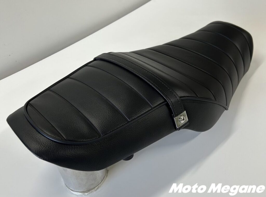 「やはり旧車といえば、シボ感の強い本革調の黒が車体に合うと思い、生地を用意して頂きました。