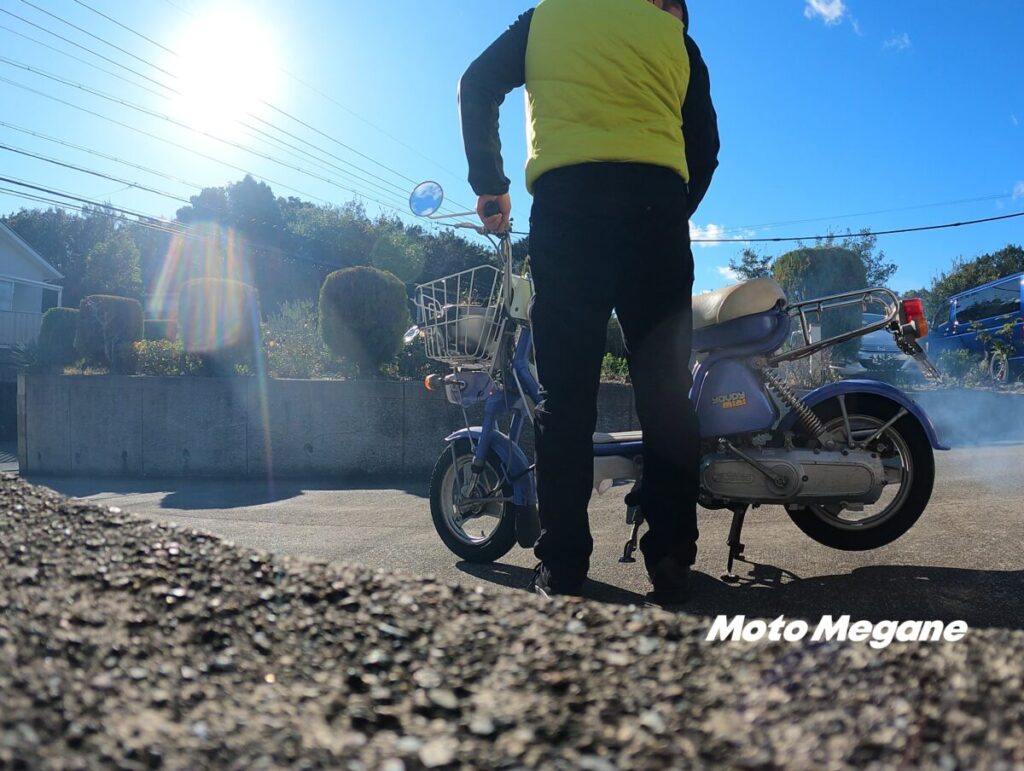 倉庫にあったのが、比較的状態の良い1973年式「スズキ・ユーディーミニ」というスクーター。その昔は「まさ子のバイク」として地上波でCMが流れていたほどの名車?だそうです。今回の車両のように長期放置車両は燃料系統の固着やオイル切れ等の点検個所が多く、貴重な部品も数多いので丁寧に作業を進めましょう。最終チェックは専門家の目を頼るのが〇。