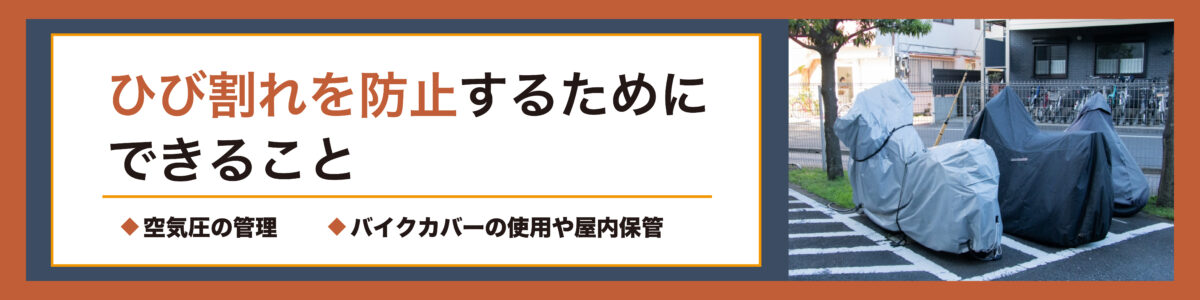 バイクのタイヤは主にゴムで作られており安全に走行するためにはゴムの状態が重要ですが、長年使っているとタイヤ表面にひび割れが発生します。