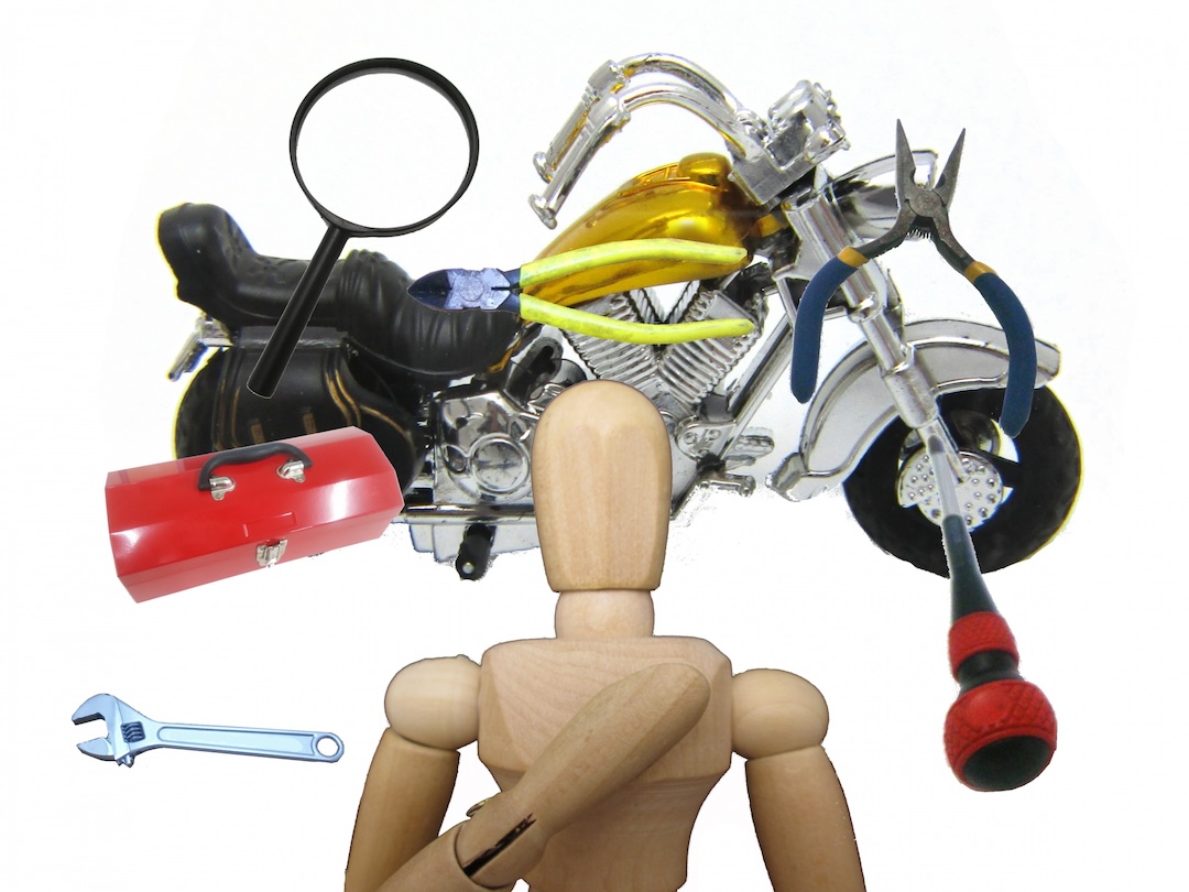 バイクはガソリンエンジンを動力源として2輪のタイヤで駆動する乗り物で、エンジンはバイクの中央部に設置されています。