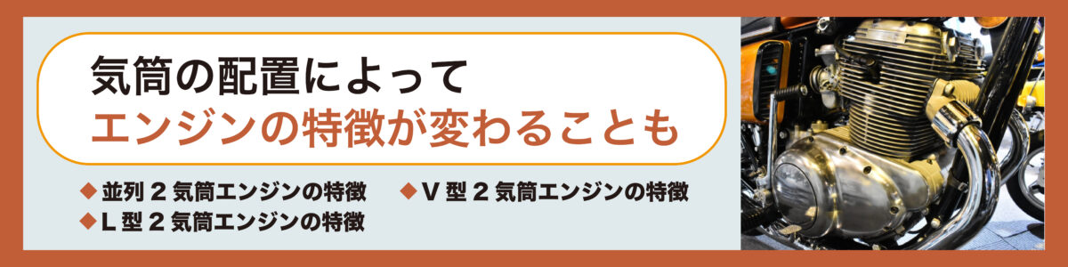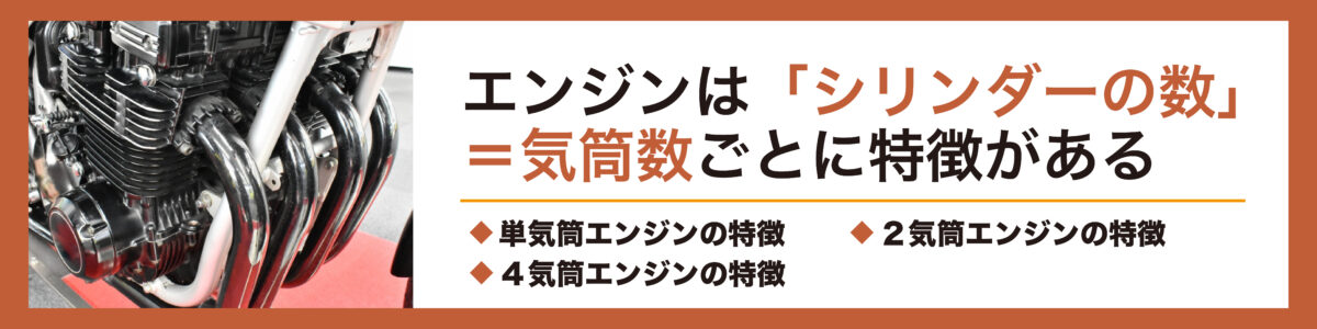 ここではバイク用エンジンとして搭載される基本的なエンジンの気筒数をご紹介します。