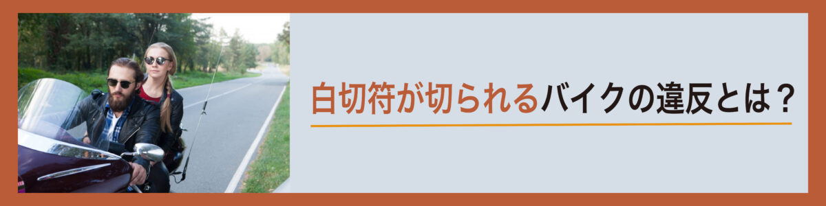 白色切符の対象となる違反は、「乗車用ヘルメット着用義務違反」です。白色切符の処分としては、納付書なしの交通切符が交付され、違反点数が累積されることが挙げられます。反則金の納付の必要はないものの、違反の繰り返しにより免許取得後1年間で累積点数が3点以上になると初心者運転講習を受けることが必要となります。
