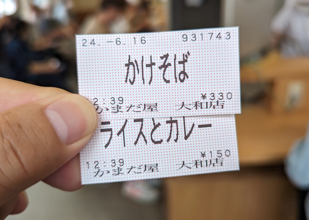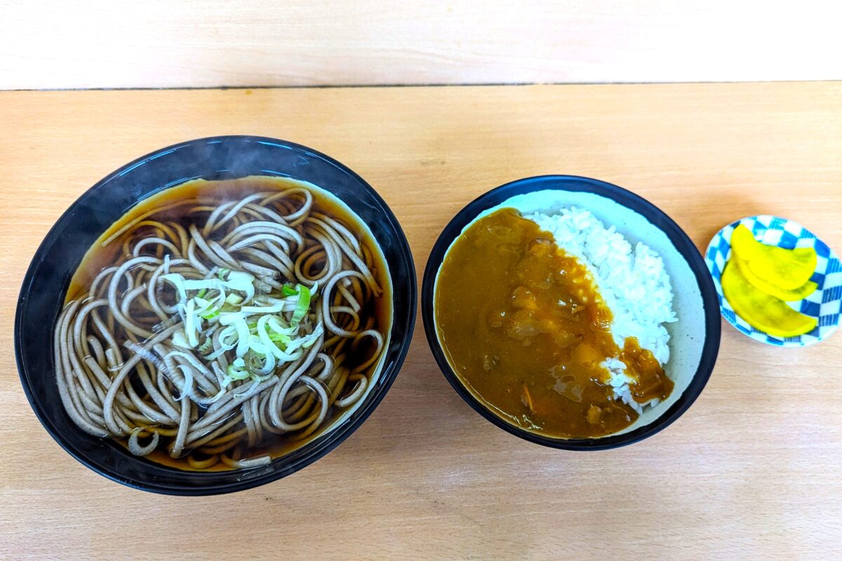 「かけそば」と「ライスとカレー」を注文しました。これで480円。物価が上昇している現代において、この安さはありがたい。「ライスとカレー」は、茶碗のライスにカレーがかかったミニ―カレーライスです。もともとは別メニューで提供していましたが、お客さんの要望を受けてセットメニューにしたそうです。