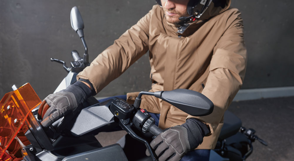 透湿防水機能にはバイクグローブの為に開発したオリジナル素材5_DRY-TECHを、防寒機能には耐水性に優れたPrimaloftを採用。