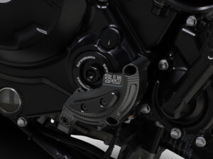 エンジンケースガードKITはドレスアップ効果を高めながら転倒時のエンジンの損傷やオイル漏れのリスクを軽減します。