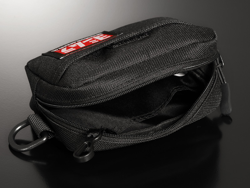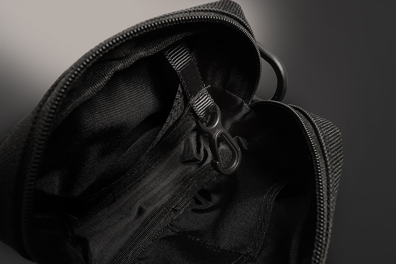 内部にはキーカラビナやポケットが付いているため小型ながら収納力が高くバッグインバッグの用途にも適しています。