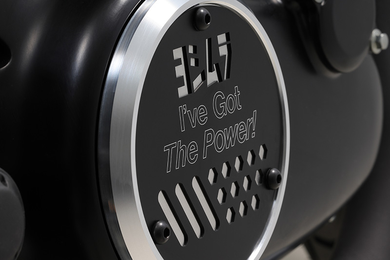 ブラック/シルバーの配色はエンジンとの一体感を高めています。