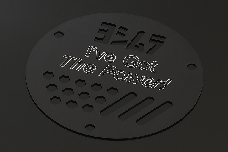 「I’ve Got The Power!」のレタリングはレーザーマーキング加工によるものでほどよいアクセントを与えています。