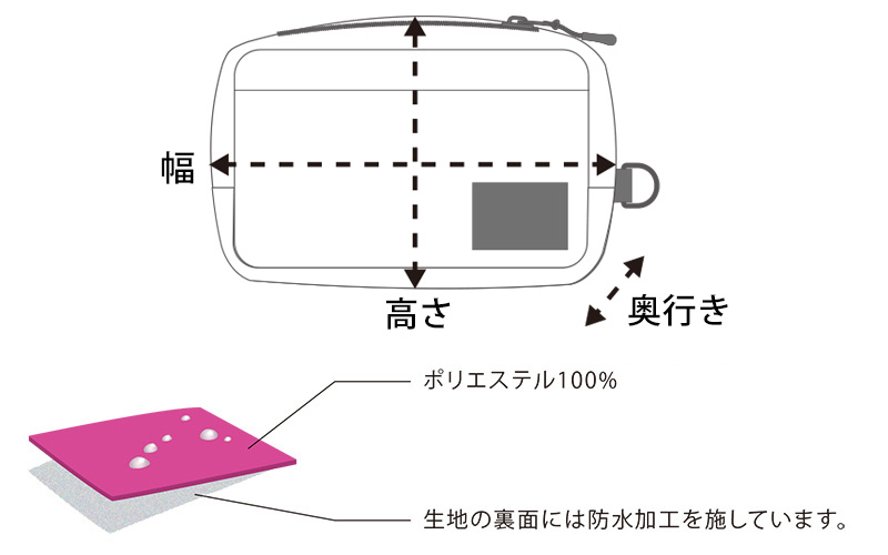 ■裏面:防水加工 *縫い目やファスナー部分より浸水する場合があります。