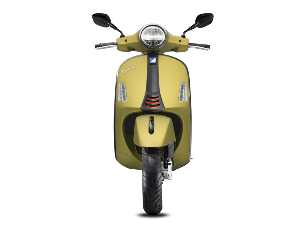 ベスパ GTS SuperSport は最もスポーティなデザインが施されたバージョンで、グラファイトカラーのホイールに加え、ボディ細部のパーツがブラック仕上げで統一されており、高性能を予感させる力強いスタイルに仕上がっています。レッグシールド中央のベスパを象徴するステアリングコラムカバーは、新鮮なカーボン風仕上げ。蛍光オレンジのアクセントを加え、アグレッシブな印象を加えています。ブラックのシートはタックロール状のパターンと、黒地に映える蛍光オレンジのダブルステッチが際立ちます。光沢塗装のイノチェンツァホワイト、そしてマット塗装のオリーブ グリーンの 2 種類のカラー展開となっており、いずれも新しい専用グラフィックが施されています。