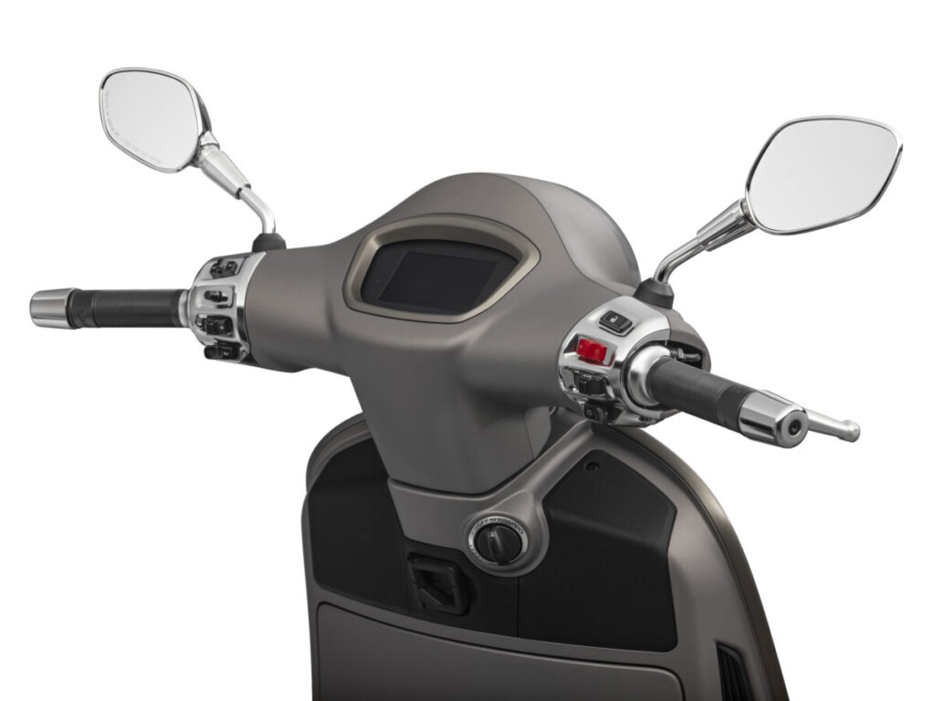 また、新型ベスパ GTS は実用性と使いやすさの面でも一歩先を行っています。キーレスシステムの導入により、従来のようなキーを挿入しなくてもエンジンを始動できます。エンジンを始動する、シートを開く、ステアリングコラムをロックするという操作が、非常に簡単にできるようになりました。