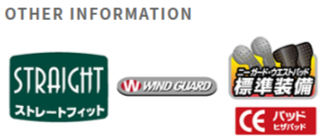 PROTECTOR: ニーガード・ウエストパッド標準装備(ニーガードはCE規格)
