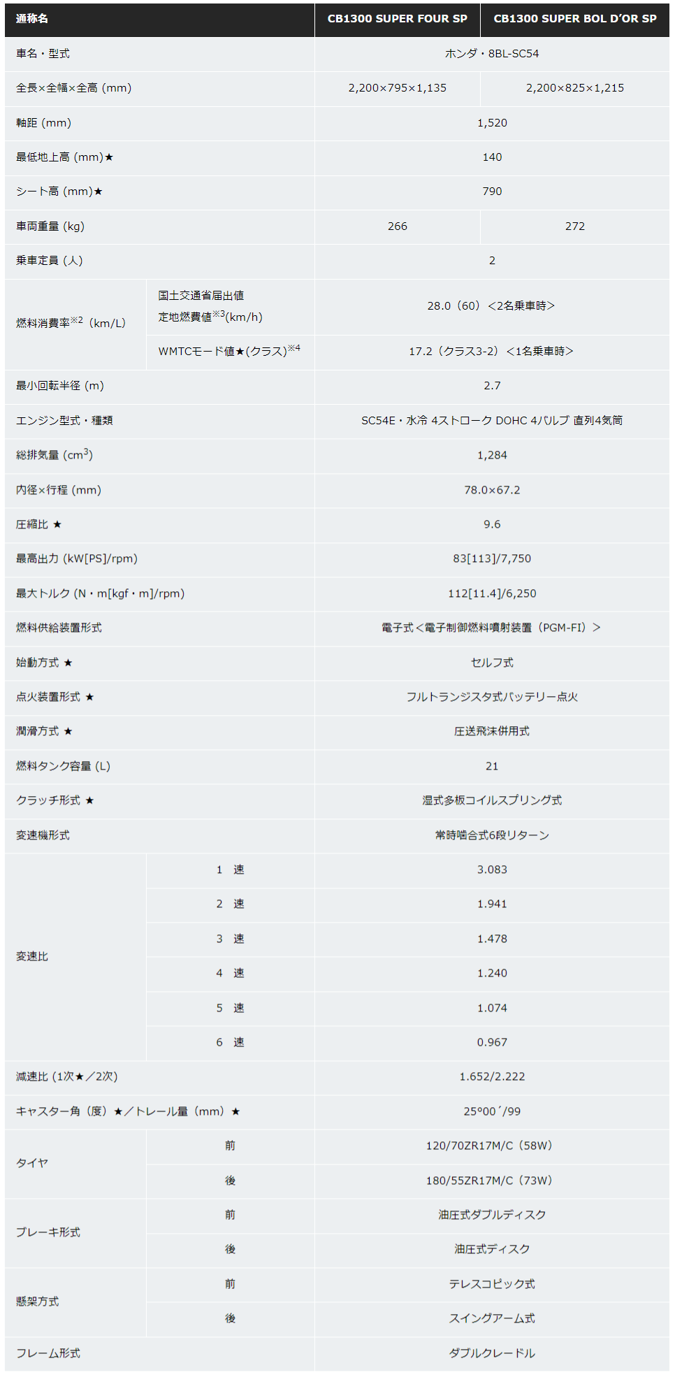 ロードスポーツモデル「CB1300 SUPER FOUR SP」「CB1300 SUPER BOL D’OR SP」のカラーリング設定を一部変更し発売