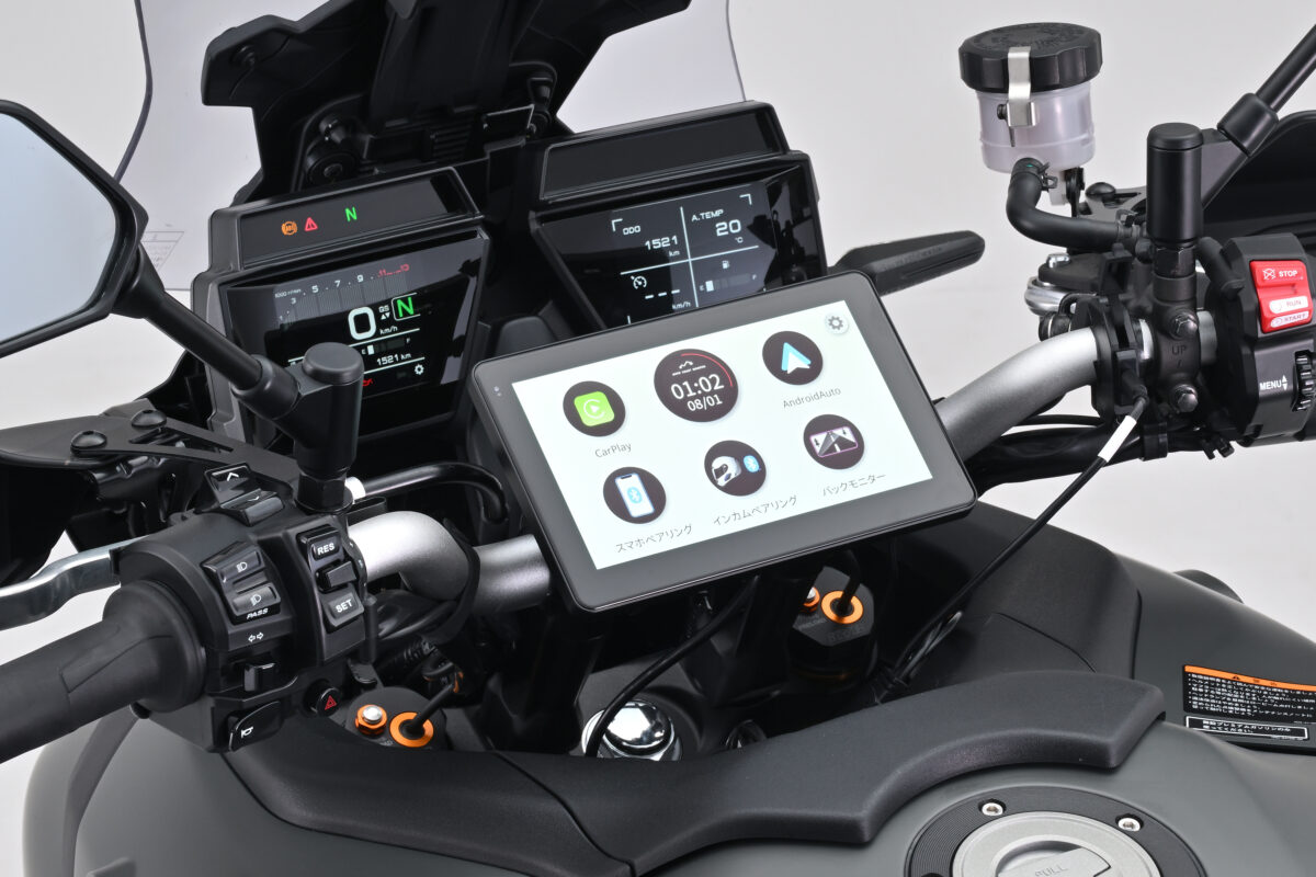 同製品は、スマートフォンと連携させ、ナビアプリや音楽再生、電話などによる通話やメッセージ送信が可能となり、スマートフォンを落下や振動での故障を回避できるのが特徴だ。また、あらゆる天候に対応し、バックモニターも搭載しているため後方への安全確認にも使えて便利である。価格は46,200円(税込)。