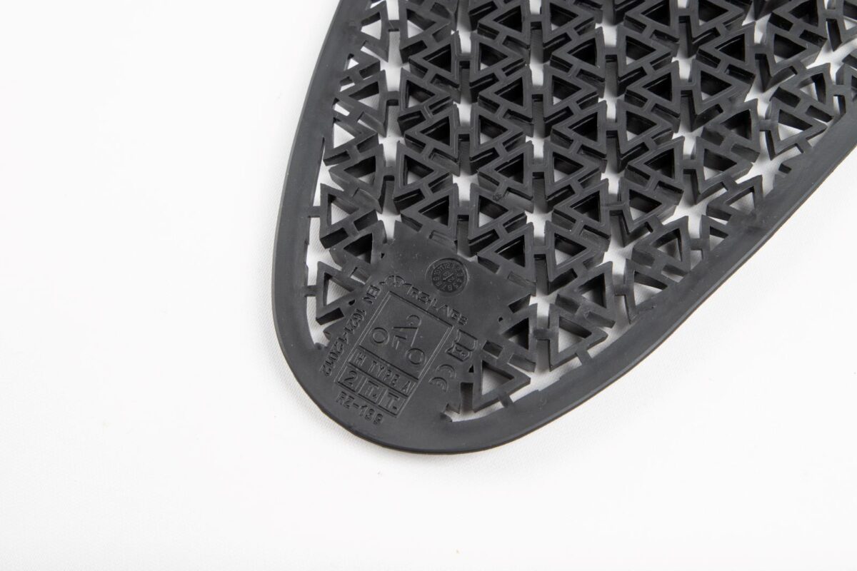 風を通す構造で通気性が良く、体のラインに沿う形状が装着時の負荷を軽減。