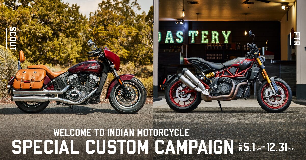 アメリカを代表するパワースポーツブランド、米国ポラリス社(ミネソタ州)の日本法人 Polaris Japan 株式会社は、「Welcome to Indian Motorcycle スペシャルカスタムキャンペーン」を2024年5月1日から12月31日まで開催すると発表した。