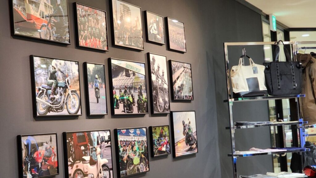 白を基調とした明るい店内。モーターサイクルとプラザアパレルがゆったりと展示され、どなたでも楽しめる空間としています。