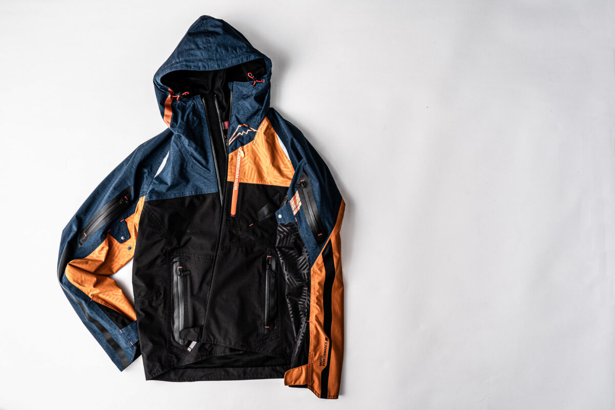 ●素材:〈表〉ナイロン100%(TPUラミネーション,生地初期耐水圧10,000mm,透湿性10,000g//24h)、ストレッチ素材/ナイロン96%,ポリウレタン4%〈裏〉ポリエステル100%(メッシュ)