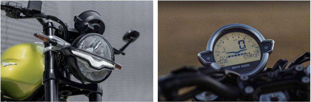 V7 Special のクロームを多用したエレガントな外観は、オリジナルV7 の精神を守りつつ、Moto Guzzi イーグルの形が浮かび上がる DRL付きフル LEDヘッドライトと、V7 Stoneと同一のデジタル一眼メーターなどの新しいテクノロジーも備えています。