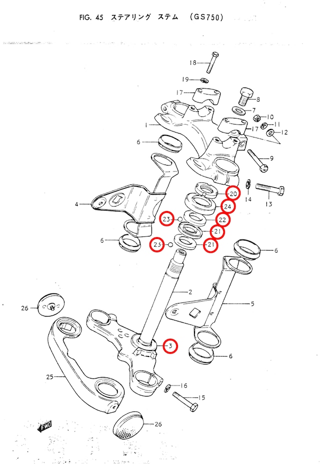 GS750 に GS1000系のステムを取り付けるコンバートセット