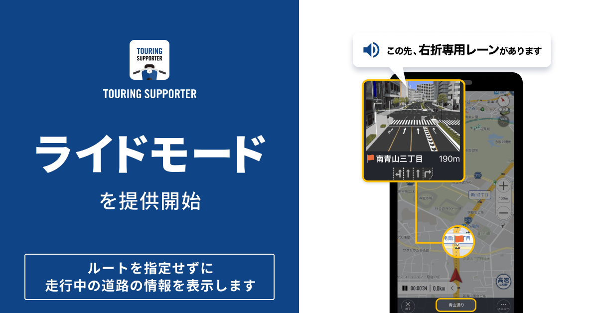 株式会社ナビタイムジャパンは、2024年6月20日(木)より『ツーリングサポーター by NAVITIME』にて「ライドモード」を提供開始した。