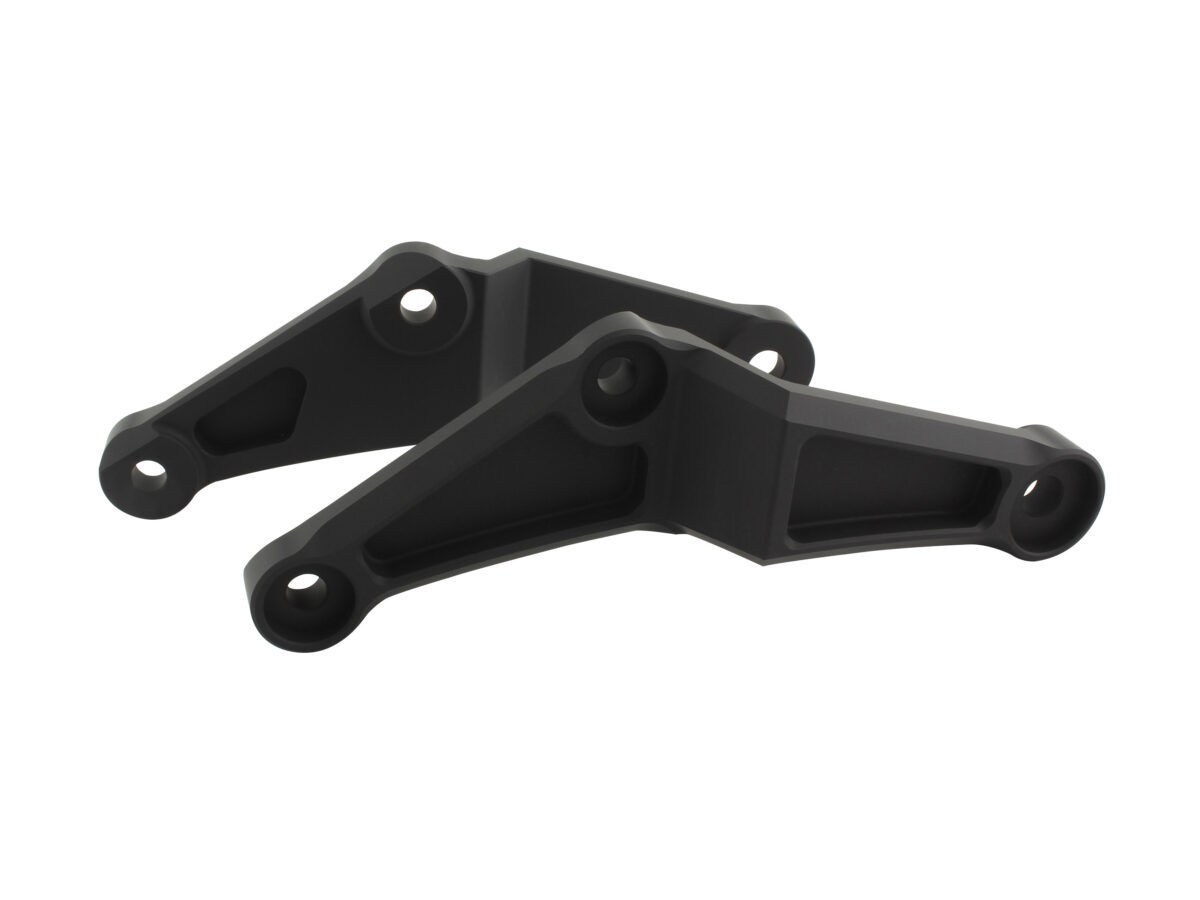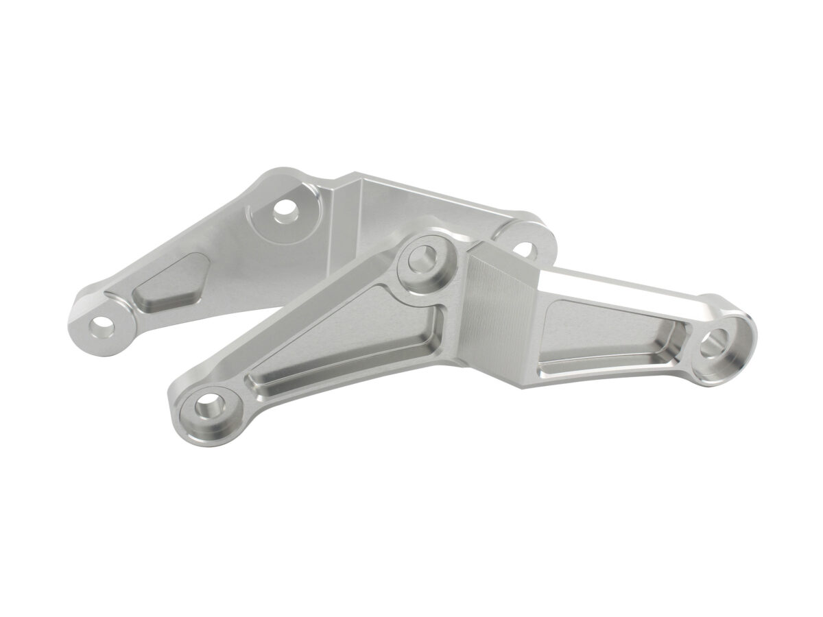 ◆高強度の A2017 材で削り出された当製品は約 12mm の厚みを持たせ、エンジンとフレームを強固に繋ぐ事で、走行時のエンジンとフレームの歪み軽減、振動軽減、更に弊社ヘッドエンジンハンガーと併用する事でその効果はより一層期待できます。