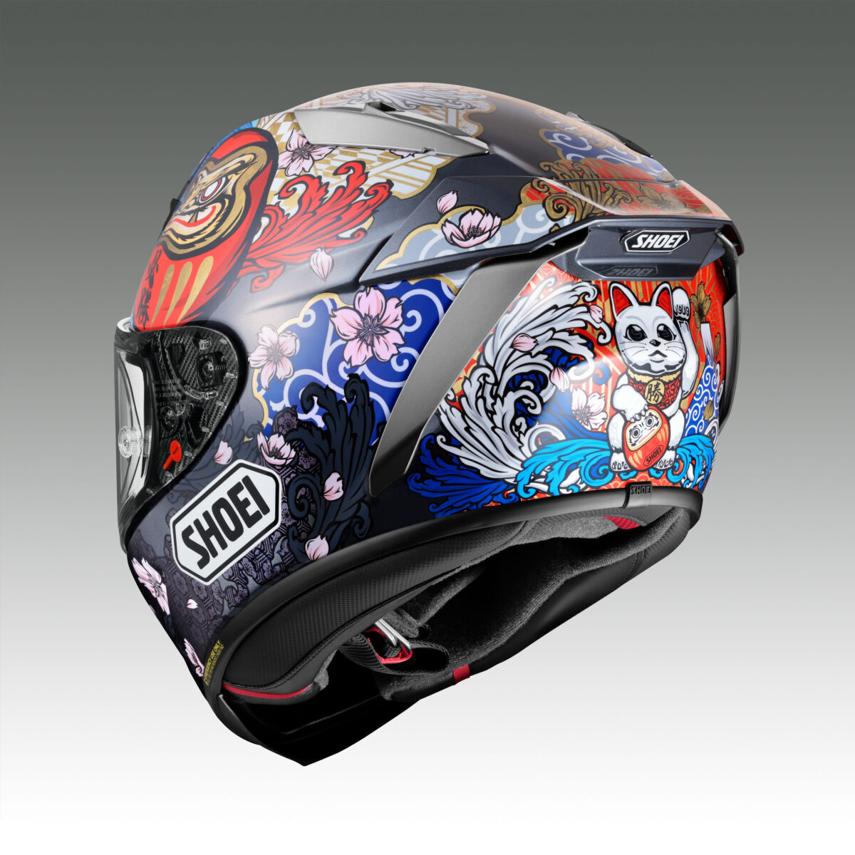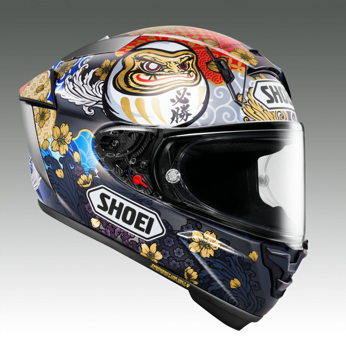 長期間にわたる研究と風洞実験により、空力性能をはじめとしたあらゆる面で高い性能を誇るレース対応のフルフェイスモデル、X-Fifteen に MotoGP ライダーMarc Marquez 選手の日本 GP 仕様のグラフィックモデル「MARQUEZ MOTEGI5」(マルケス・モテギ 5)が新たにラインナップ。