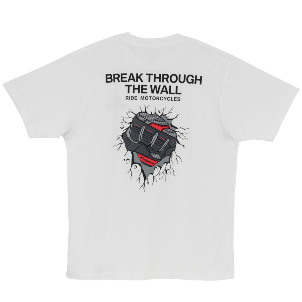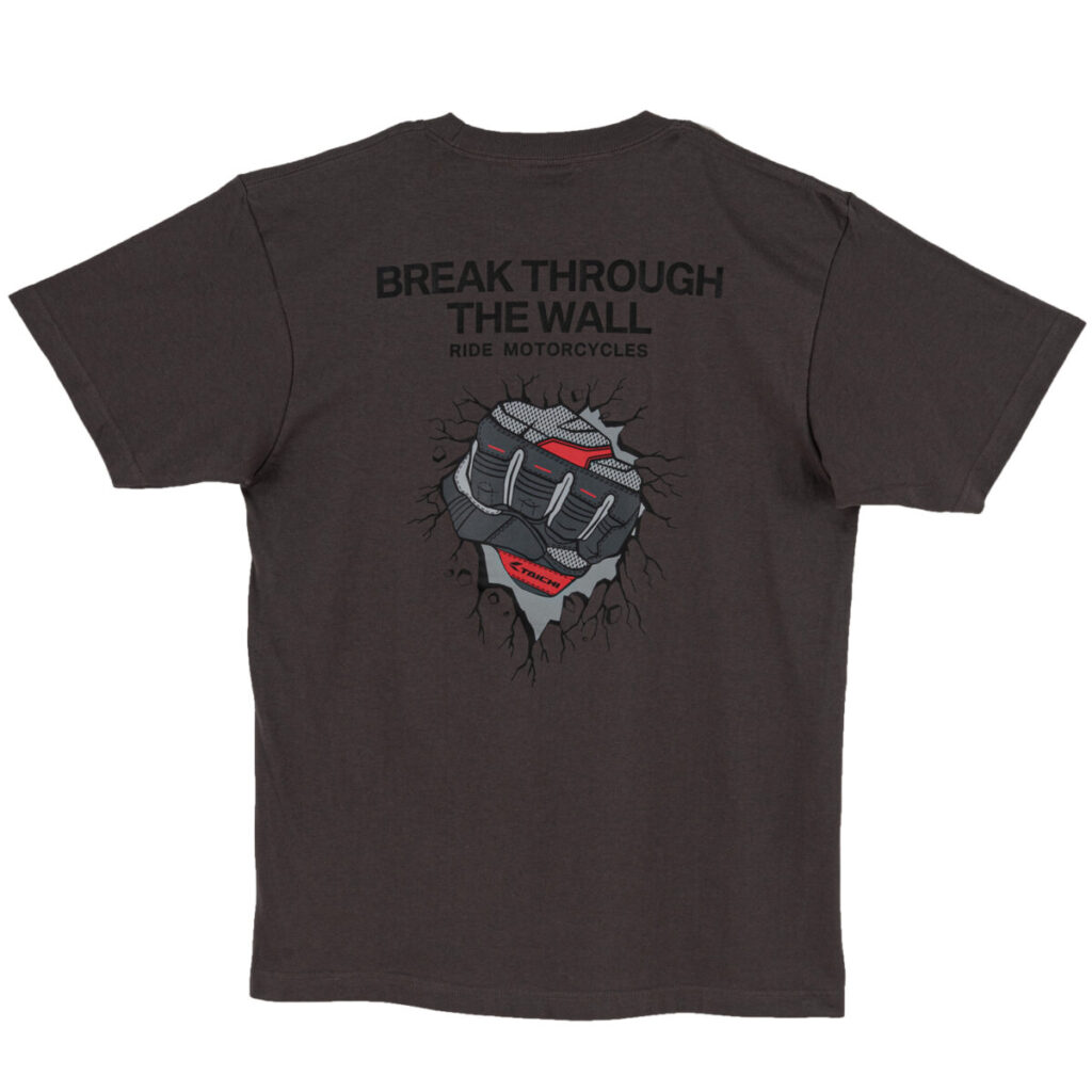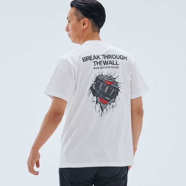 背面に壁を突き破るようなインパクトのあるグラフィックを施し、着ているだけで思わず外へ飛び出したくなるような躍動感あふれるデザイン。