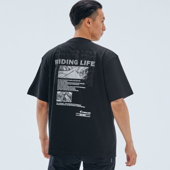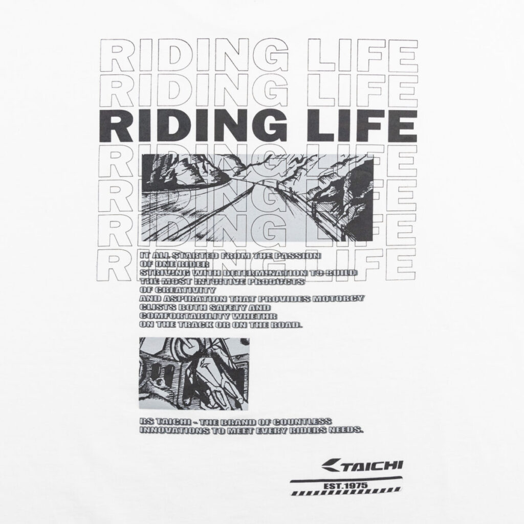 胸元に TAICHI ロゴをあしらった、ライディングでも普段使いでも着まわしやすいベーシックなデザイン。