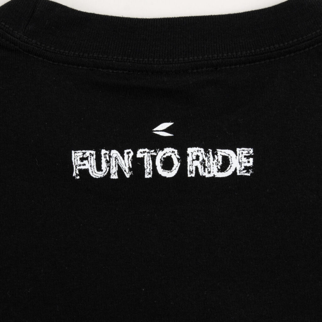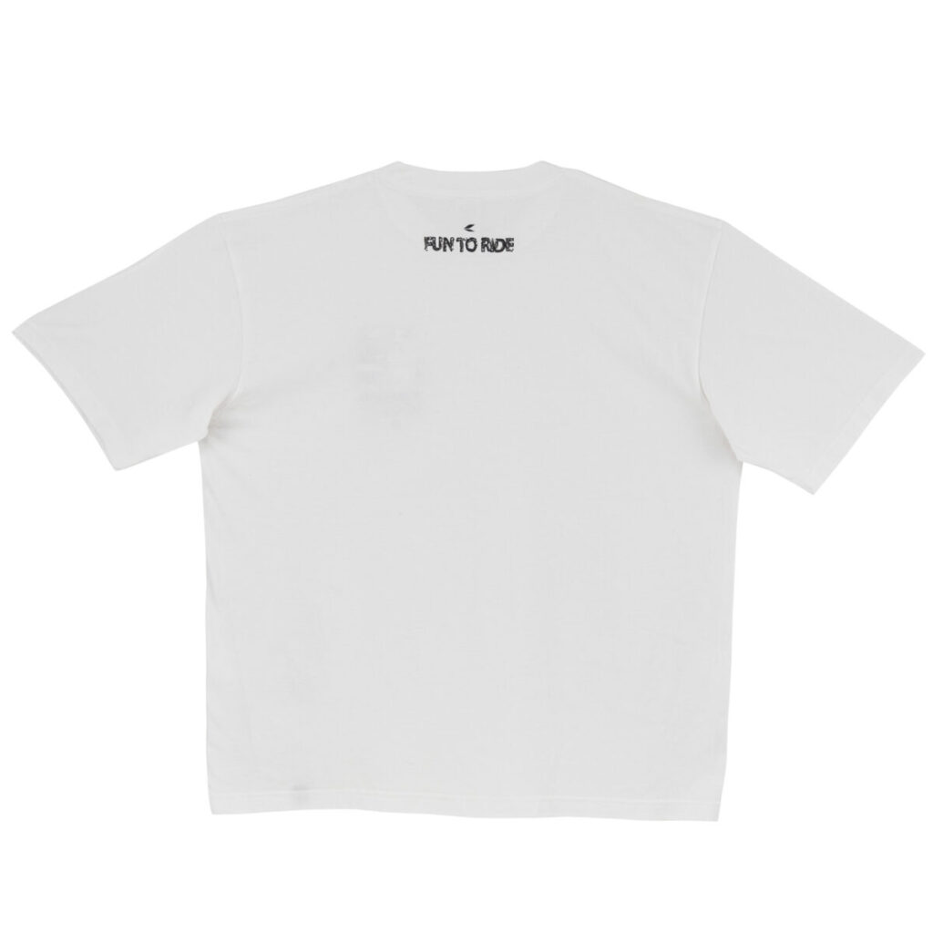 アニマルモチーフを取り入れた、サーキット仕様の猫が主役の T シャツ。2 匹仲良くレーシングスーツを着た後ろ姿が愛らしい一枚です。背面の「ENJOY RIDE」の文字は猫のふわふわな毛をイメージしたデザイン。ベースの T シャツは 5.6 オンスのやや肉厚の生地感で、リラックス感のある少しゆったりしたシルエットです。