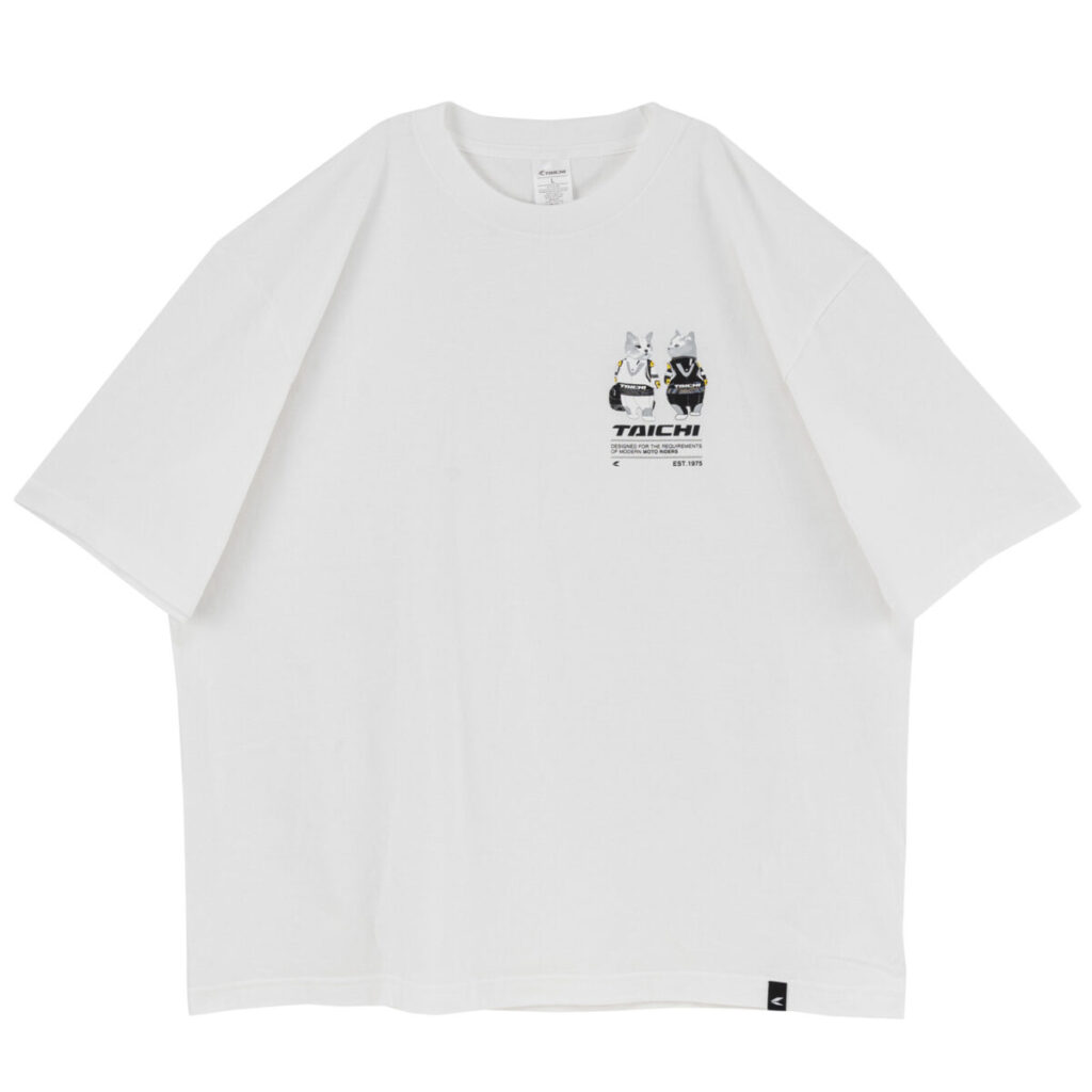 胸元にTAICHIロゴをあしらった「TAICHI LOGO T-SHIRT」は3,630円。レーシングスーツを着た猫の後ろ姿が愛らしいデザインの「PAIR RACER CAT OVER SIZE T-SHIRT」は4,400円。フロントにTAICHIロゴ、サイドにNEW ERA®のフラッグロゴを刺繍で施した「MILITARY KNIT」は4,950円(いずれも税込)。その他、多彩なTシャツがラインナップされている。