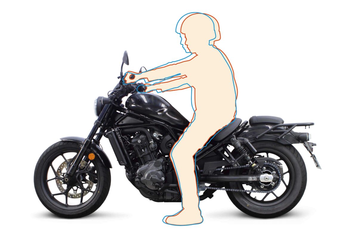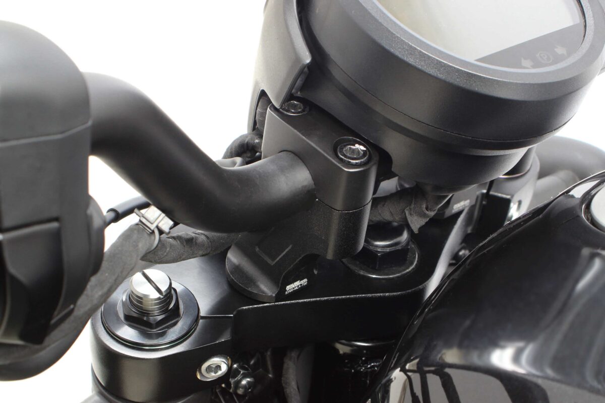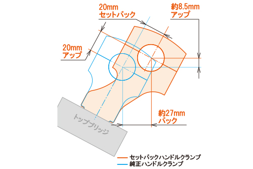ステアリングハンドル位置を20mmセットバック/20mmアップしライディングポジションを前傾姿勢からアップライトな姿勢へ変更します。※1