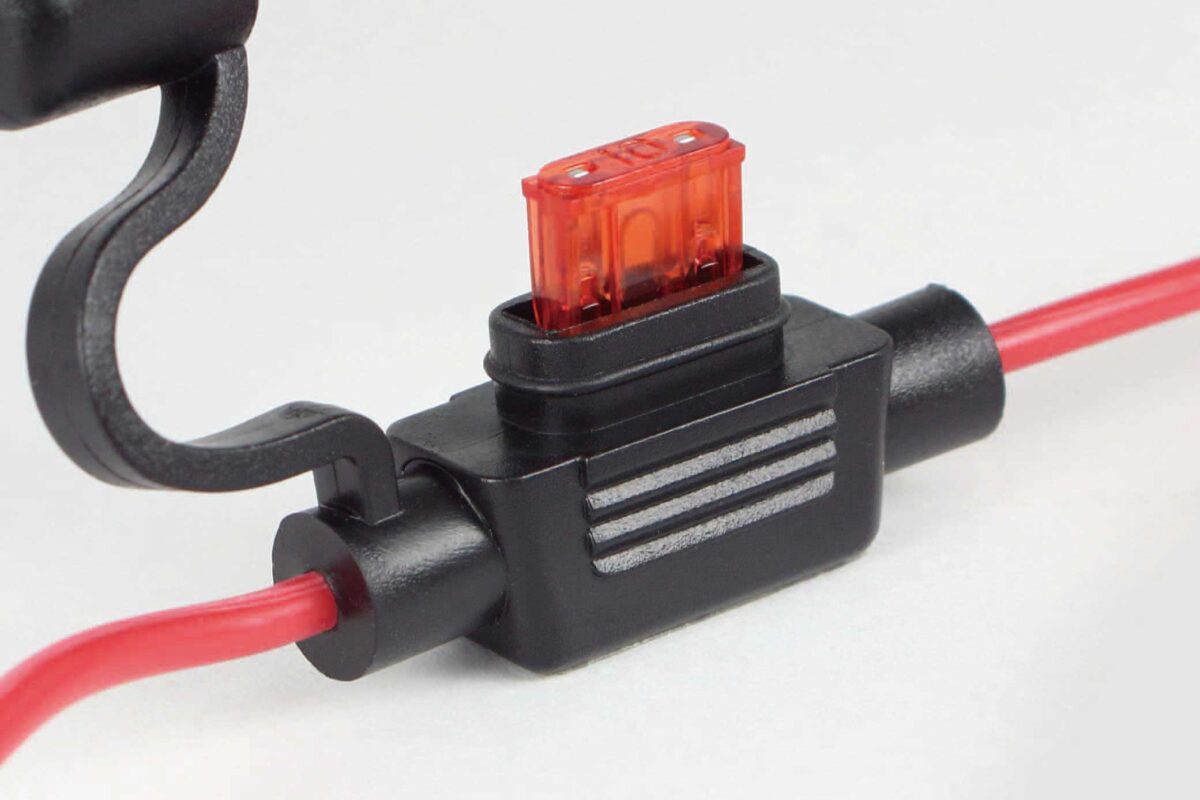 ■配線コードには、10Aヒューズを装備し、保護用メッシュチューブが付属しています。