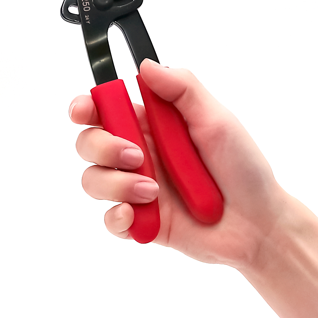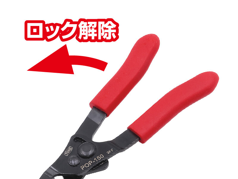 耐磨耗性、耐熱性などを兼ね備えたTPRグリップを採用し、手にかかる負担を軽減。手を離した状態で保持可能な無段階ロック機構に加え、グリップを開くだけでロックを解除できるため作業性抜群。
