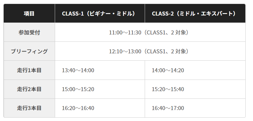 ※注)同日に他のクラスの走行もあるため指定エリアを厳守してください。