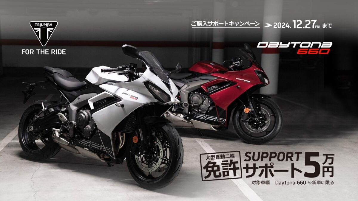 人気の Daytona 660 の新車をご成約いただいた方を対象とした免許サポートが登場!